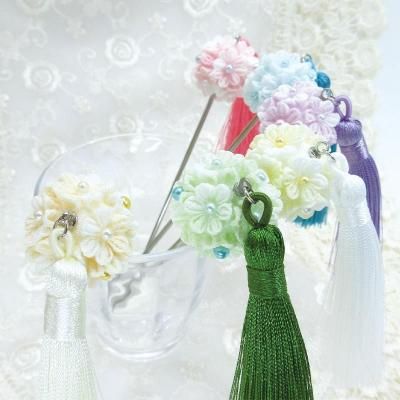 一越ちりめんで玉飾りを作り1本足の簪に仕上げるキットをご用意しました
