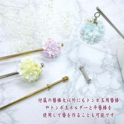 付属の「簪棒大」以外にも「トンボ玉用簪棒」や「トンボ玉ホルダーと平簪棒」(すべて別売りあり)を使用して簪を作ることも可能です